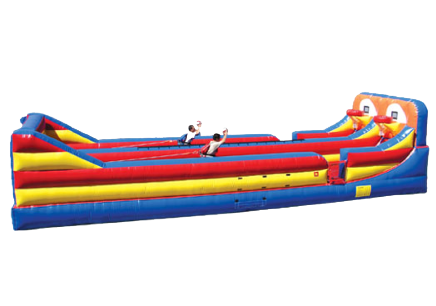 Description: The Bungee & Basketball Hoop Shootout combo is an awesome inflatable game! This game allows two people to run against the bungee in a fast-paced basketball shootout! Test your skills on the court in this high energy inflatable game.